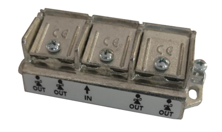 Le serie di divisori e derivatori DI sono realizzate interamente in pressofusione e hanno il fissaggio del cavo coassiale tramite morsetto a sportellino e vite per polo caldo centrale. Sono state inoltre appositamente concepite e adattate per i segnali terrestri digitali TV in modo da avere un’alta linearità nella banda da 4 a 860MHz. I divisori hanno solo su una uscita il passaggio di corrente, mentre le altre sono isolate.